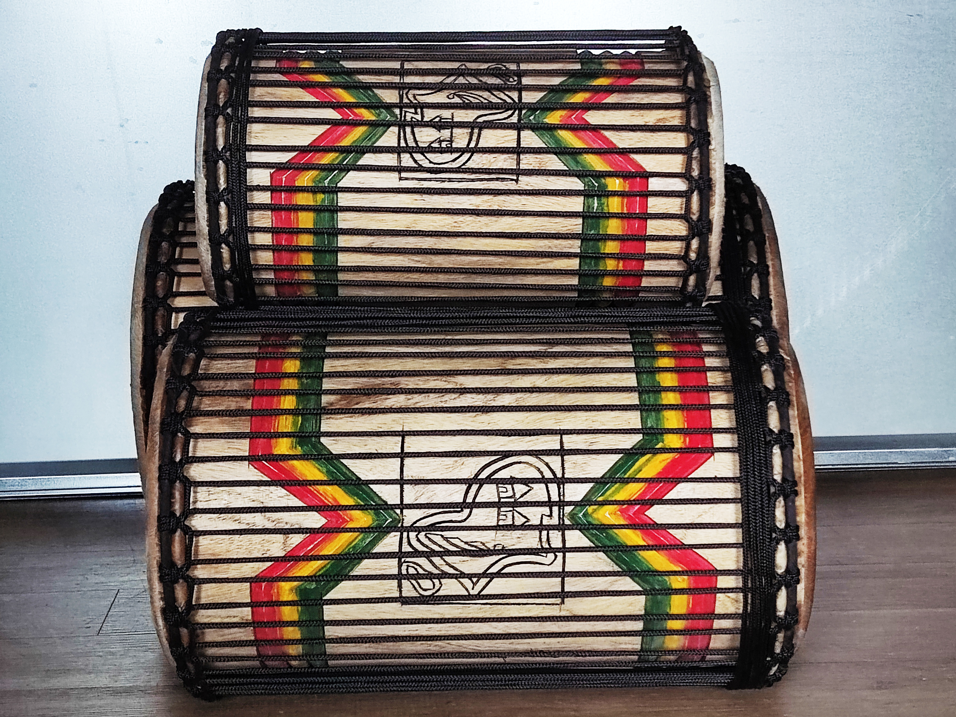 Ensemble de tambours basses dunun - Set de doundouns de Guinée