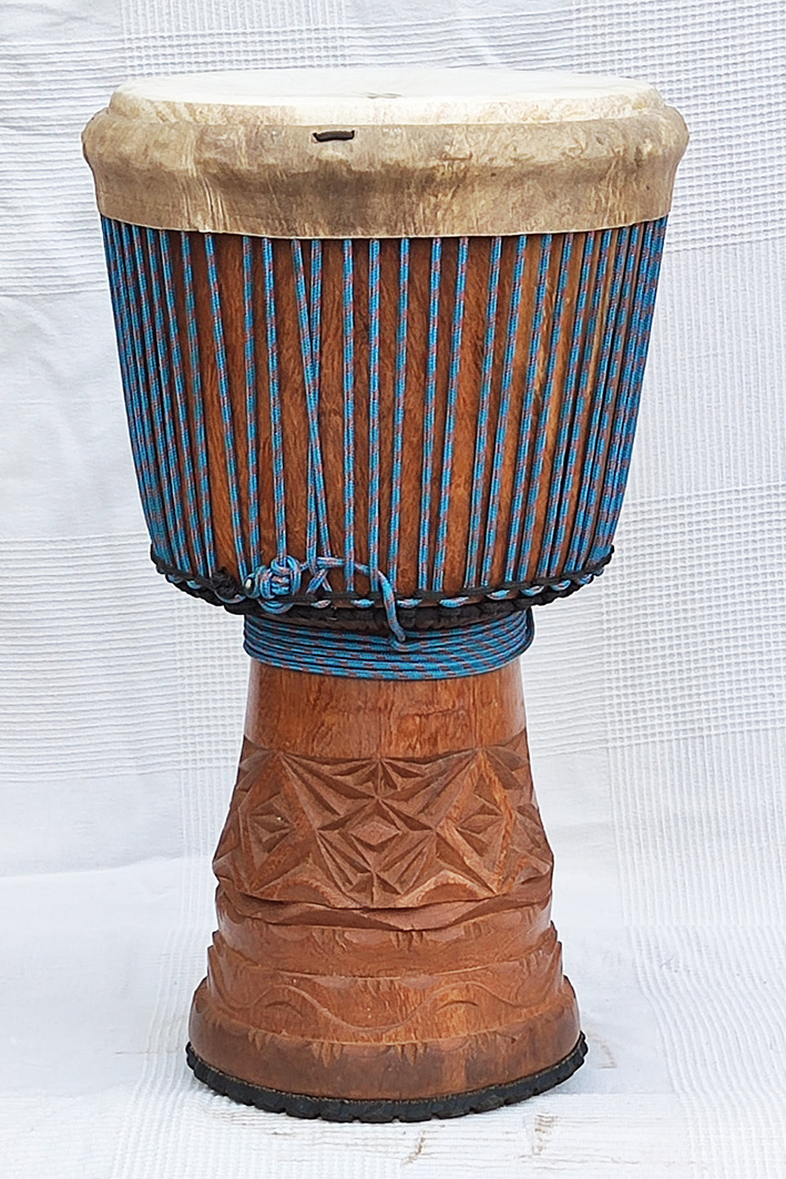 Magnifique djembé de Guinée en bois de Guéni, j’ai pris le plus léger.